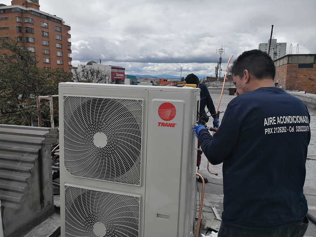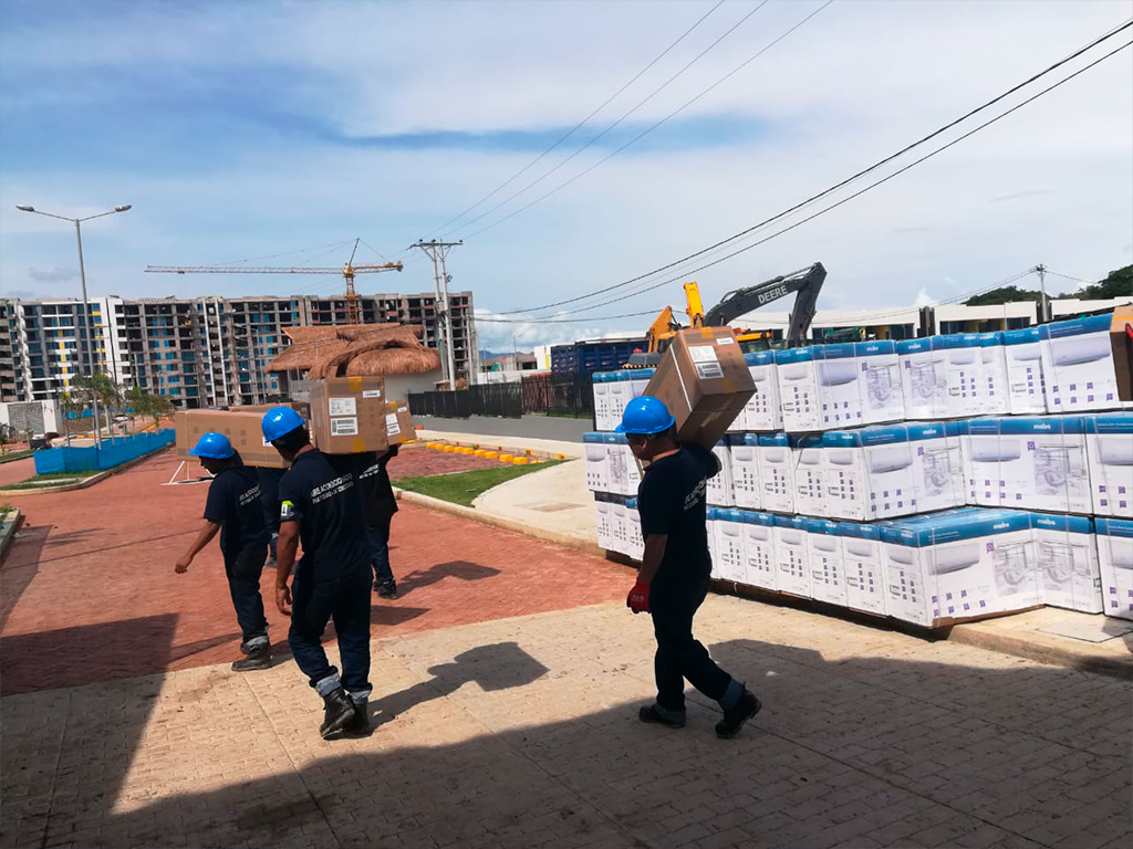 Equipo de trabajo realizando instalaciones en edificios residenciales